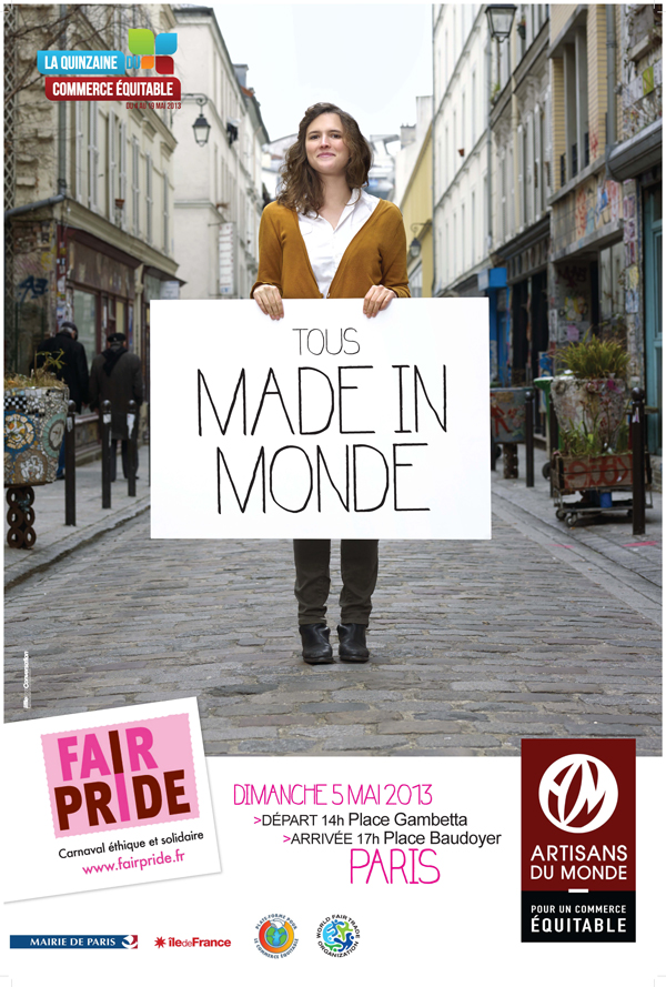 [caption id="attachment_4680" align="aligncenter" width="600" caption="La Quinzaine du Commerce Équitable se déroule du 4 au 19 mai partout en France"][/caption] La Quinzaine du Commerce Equitable se déroule cette année du 4 au 19 mai un peu partout en France.   Une fois n'est pas coutume, il n'y aura pas d'événement particulier à Lyon mais si vous êtes à Paris ce weekend, ne ratez pas l'évènement d'ouverture de la « Quinzaine du Commerce Equitable » 2013 en France, la Fairpride.   Un carnaval éthique et solidaire dont le cortège déambulera le dimanche 5 mai à Paris, et pendant cette quinzaine à Boulogne-sur-Mer, Metz et Nice. Un village solidaire et de nombreuses animations et concerts pour petits et grands rythmeront également la journée.   Et pour l'anecdote, cette année c'est Laspid qui s'est chargé de réaliser les t-shirts bio et équitables de l'événement, signés "Fairpride" & "Tous Made in Monde".