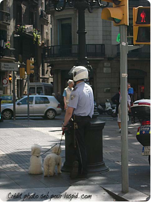 Certains d'entre-vous nous ont fait part de leur curiosité concernant l'origine du motif El Raval. Voici donc la photo originale dont est inspiré le motif. Ce n'est pas un montage, aucune retouche n'a été faite. J'ai fait ce cliché à la va-vite il y a un an et demi, surpris de voir un motard de la guardia urbana de Barcelona tenir ces deux caniches en laisse dans une rue de la ville, près du barrio El Raval.