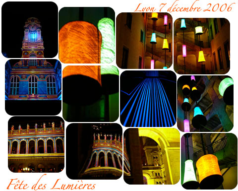 Nous voulions adresser cette carte postale réalisée à partir de quelques photos prises dans notre quartier jeudi dernier à toutes celles et ceux qui sont loins, qui n'ont pu venir à Lyon ou qui nous ont demandé si la fête des Lumières c'était sympa cette année.
