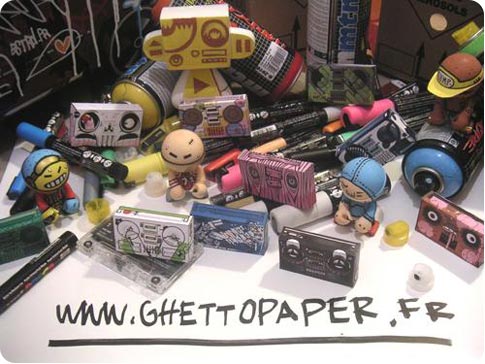 En attendant la petite surprise que nous vous avons préparée pour le site, nous avons trouvé délire ce concept proposé par ghettopaper. Avis au fans de coloriages, de collages, de toys et de ghettoblasters !