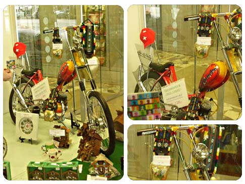 Et au passage un coup de coeur pour les nombreux adeptes du tuning sur mob avec cette superbe chopper à pédale vue dans la vitrine d'une station-service (bon ok j'avoue, moi aussi j'avais des plaques chromées et un carbu de 12 sur mon Ciao modèle 1981...).